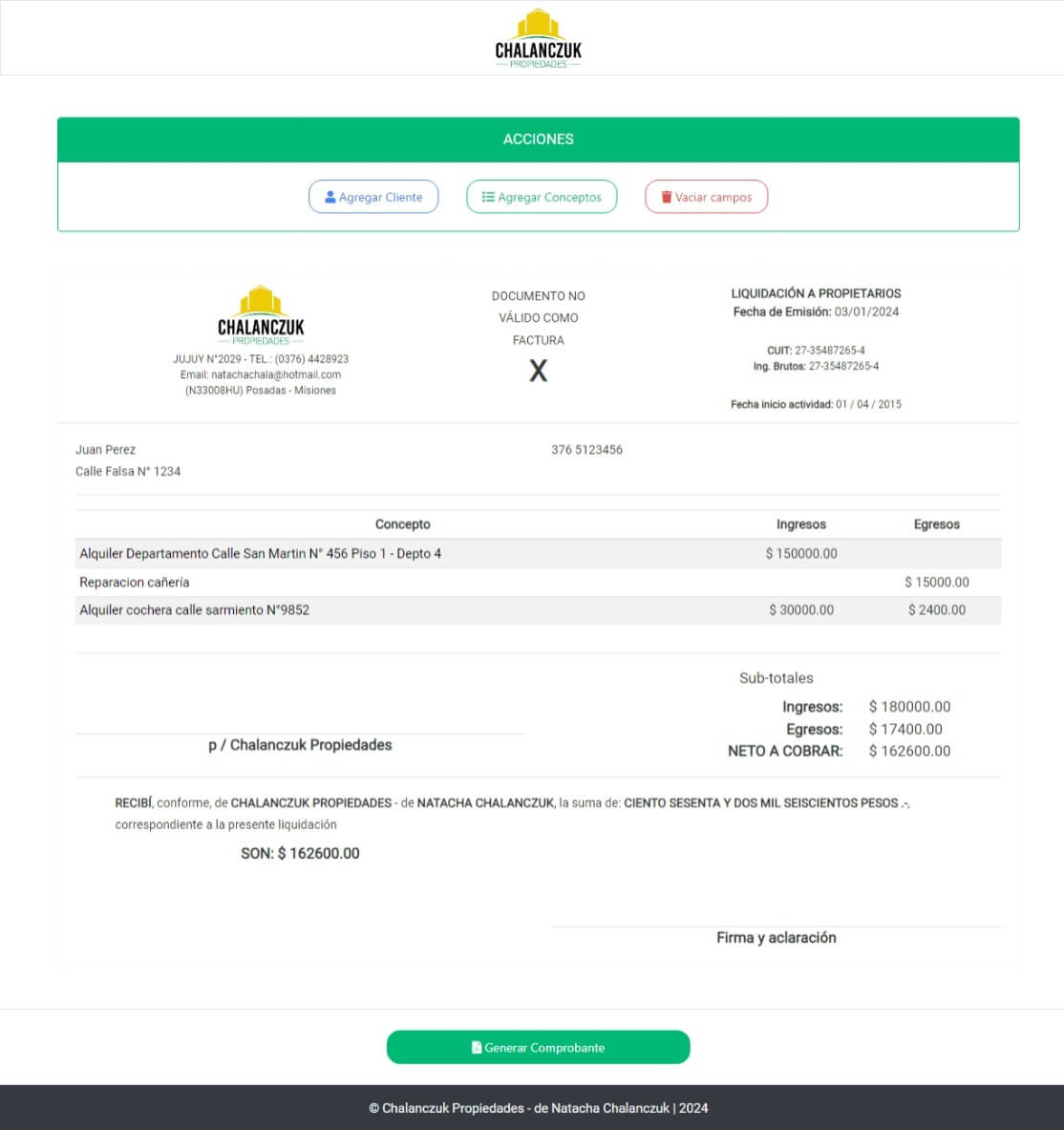 Aplicación realizada para una inmobiliaria. Permite crear, imprimir y/o almacenar comprobantes en PDF.