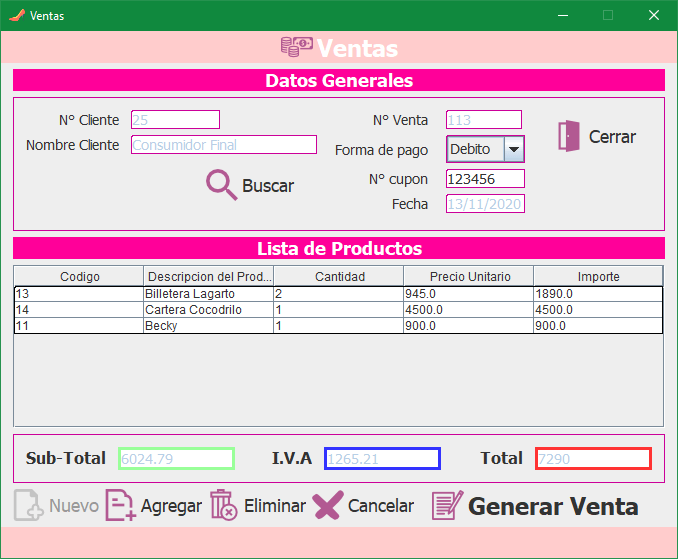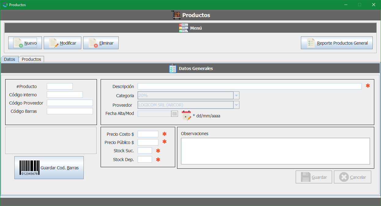 Sistema de control de inventarios, generador de ventas, generador de etiquetas y código de barras.